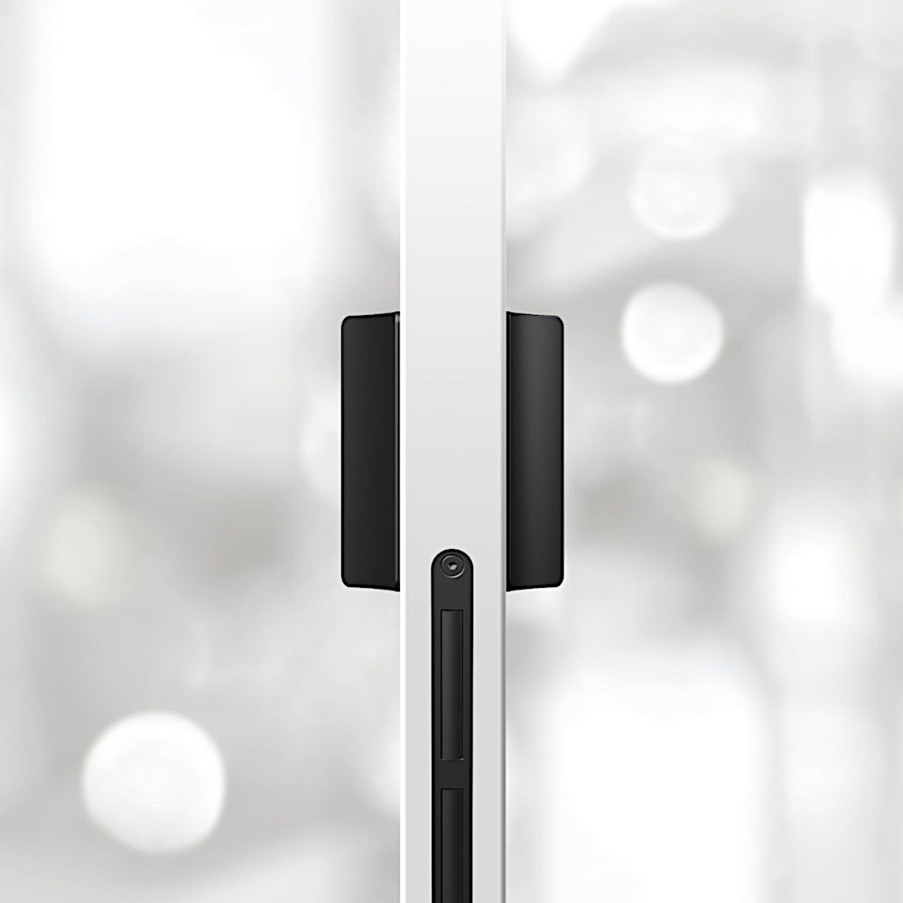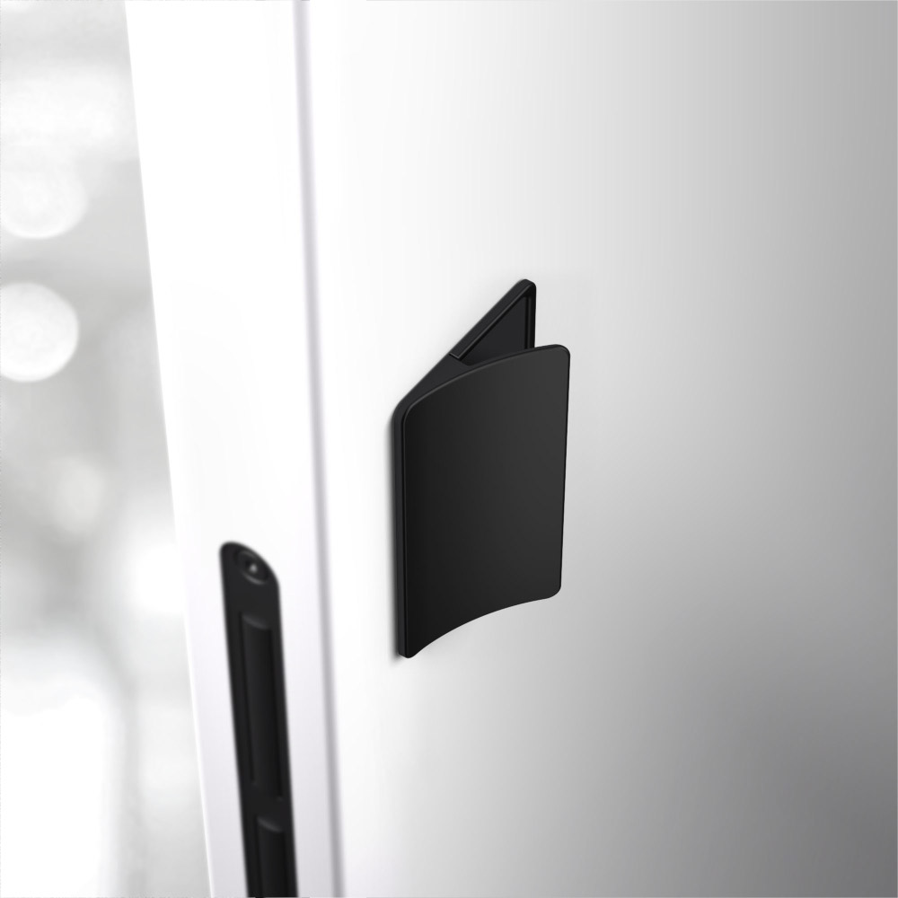 Эргономичная ручка - скоба с мягким закруглением и возможностью замены внутренней магнитной панели для гармоничного сочетания покрытия/цвета ручки с дверями. или же для обозначения места управления дверью.